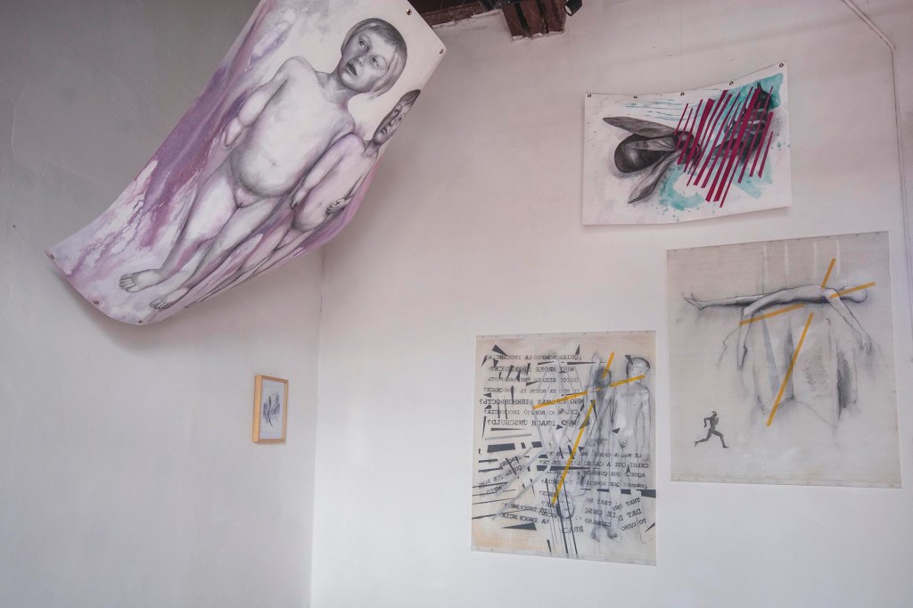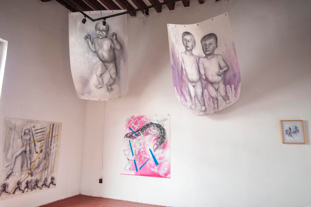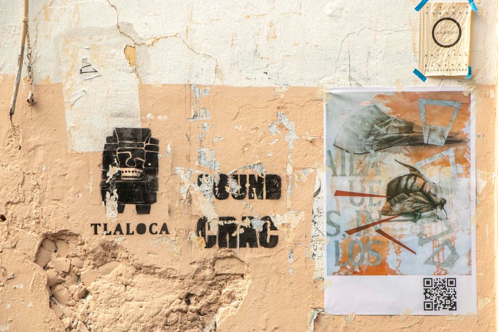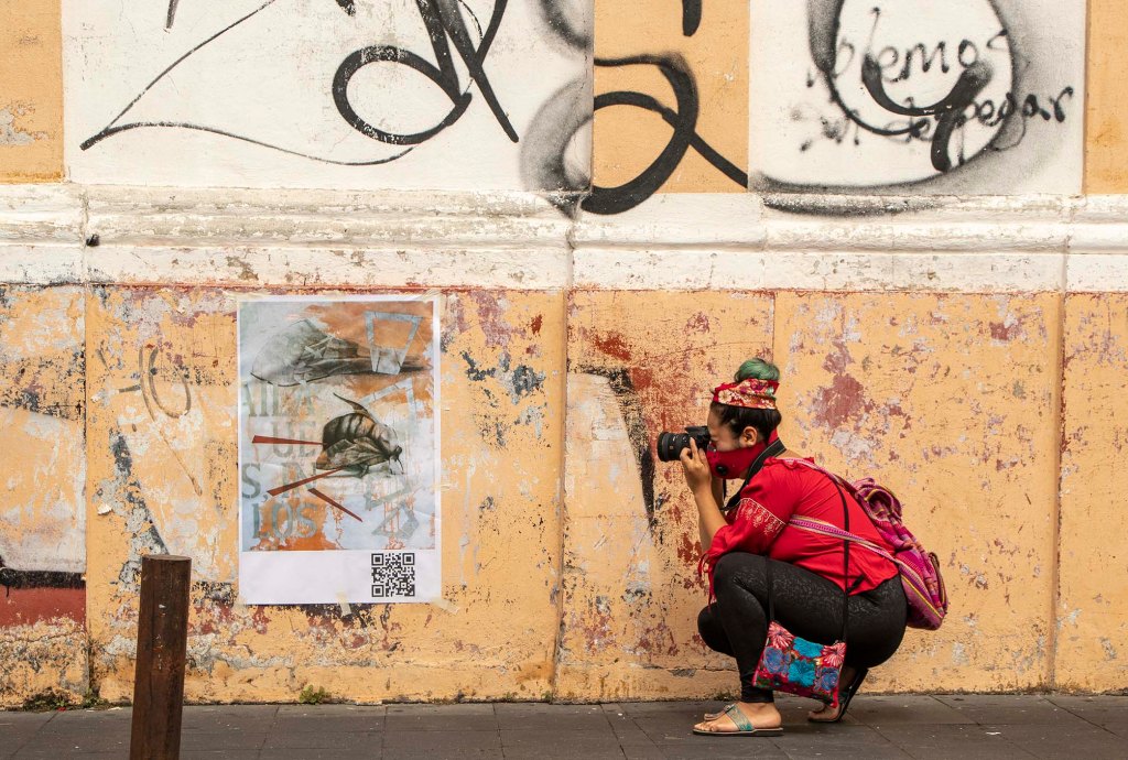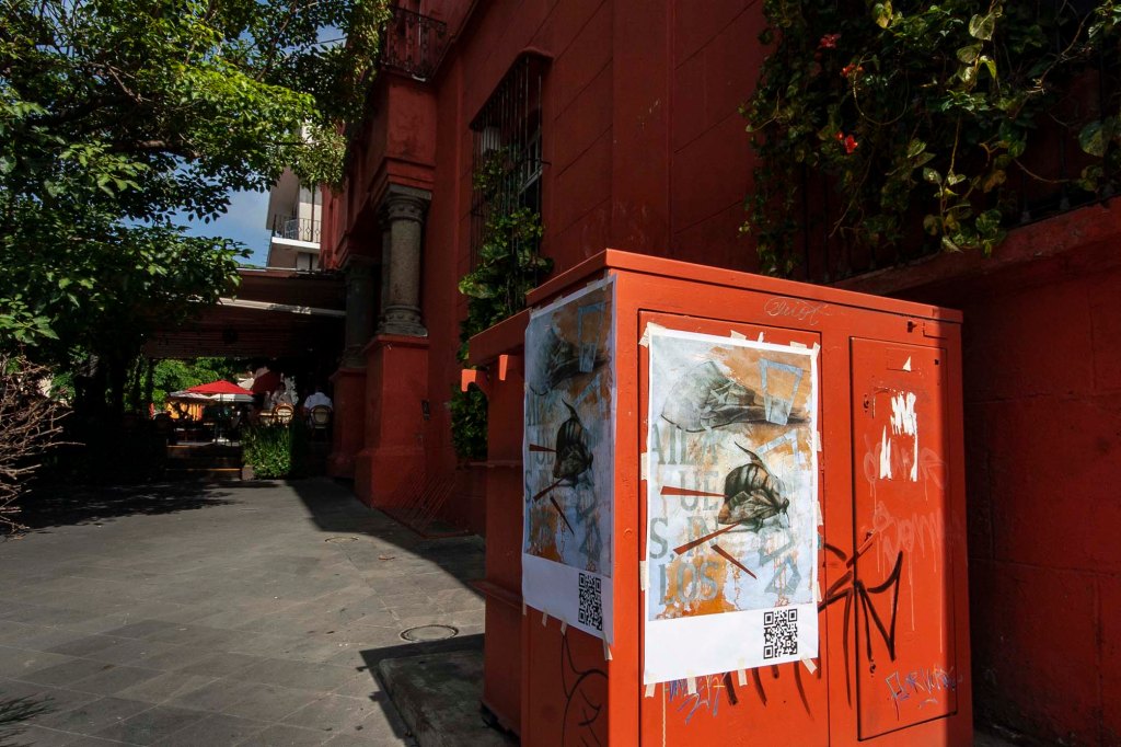 Como parte de la exposición realicé el cartel cuyo QR te vinculó a esta página. No solo se trata de publicitar la exposición, sino también de realizar una reivindicación al cartel y sus nexos con actividades culturales. En una ciudad indiferente e insensible a las propuestas de creatividad gráfica y cada vez más distanciada al ejercicio del pensamiento, empapelarla con mis imágenes también corresponde a una intervención del espacio público como gesto que llama a despertar del letargo que disuelve la idea de ser ciudadanos día a día.